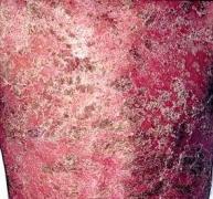 患者李某,男,38岁,就诊时全身弥漫性潮红,浸润及水肿,伴大量脱屑,发热、心烦、大便干、小便黄。舌质红绛,苔薄黄。脉弦数。曾长期服用中西药 效果不明显,一度对治疗失去信心,在南昌中山牛皮癣医学研究院治疗2个月后,全身症状明显好转,瘙痒减退,不再有脱屑,患者逢人就夸:是南昌中山牛皮癣医学研究院 给了我第二个生命。