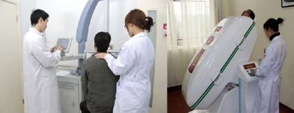 患者在用“CPC牛皮癣整体康复体系”治疗(左)与中药熏蒸治疗(右)