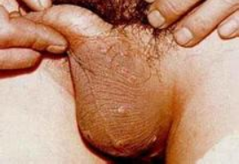 ⑴小丘疹、疱疹和小水疱 阴囊部可发现密集分布的小米大小的丘疱疹或小水疱,基底潮红。