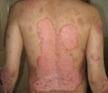 三、表面化的鳞屑表达:银屑病早期症状在皮损上遮盖有很厚的浅灰色的颜色或草灰色的鳞屑,普通头部银屑病严重更为多见,并且鳞屑容易剥离,多有发痒感受。
