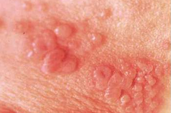 单纯疱疹病毒(herpes simplex virus 简称HSV,HSV主要有两个血清型:HSV-1和HSV-2。HSV-1主要侵犯躯体腰以上部位,可引起口腔、唇、眼、脑及腰以上部位感染,多为隐性感染,并不表现出症状;HSV-2侵及躯体腰以下部位,主要是生殖器,它是引起性病的主要病原体之一。罹患单纯性疱疹时,病变部位会产生米粒般大小的水泡,发生单一或群集小水泡,通常都是10个左右集结在一起,主要侵犯皮肤及粘膜,会痒痛。水泡周围的皮肤变红,同时会产生轻微的瘙痒感和发热。这种水泡若不加以治疗,经过数十日之后,会裂开形成糜烂。