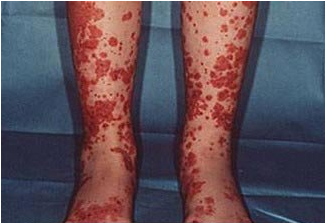 (1)皮肤症状:以下肢大关节附近及臀部分批出现对称分布,大小不等的斑丘疹样紫癜为主,主要分布于下肢的伸侧和臀部,常为对称性,少数累及面和躯干部,紫癜可突出皮面,伴轻微痒感,初为鲜红色,继而为暗红色,褐色,亦可以表现荨麻疹,血管神经性水肿,多形红斑,甚至溃疡坏死和出血性大疱等,皮疹大小不一,可融合成片,分批出现,亦可反复发作,有的可伴有局限性或弥漫性水肿,如头部,面部,眼睑等,皮肤紫癜通常约经过2周而渐消退。