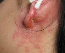 7.生黄柏、大枣炭各等份:将大枣炒成炭同生黄柏共研成细粉,香油调匀涂局部。如渗出液多亦可撒干粉,每日2--3 次。