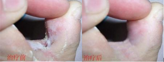 根据其病情给其制定了一个治疗方案,采用“中药离子渗透分型癣化疗法”,利用先进的皮癣病wood伍德诊断仪及配合 内服我院研制的中药配方,治疗半个疗程(12天)就见到了明显的效果,瘙痒感明显减轻,晚上能好好的睡一个安稳觉了,原先扩散的暗红小点开始退化,片状鳞 屑开始脱落,脚底发硬皮肤开始变软,看到这样的结果患者非常高兴,对康复非常有信心。