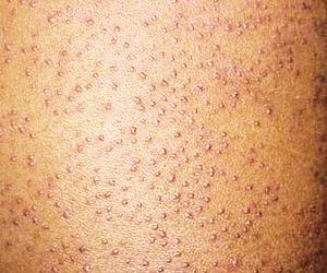 2、毛周角化还非常容易遗留色素沉着,更有碍观瞻!需要特别指出的是:严重的毛周角化症贵在早期治疗,因为延误治疗不仅容易形成难看的色素沉着,而且还可大大增加治疗的难度!