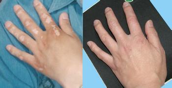 康复历程:去年小吴手部出现了很多块硬币大小的白斑,光光的,滑滑的,经过检查发现是白癜风,可把小吴的父母急坏了,但是小吴的父母去医院检查时,某医院医生并没有夸大的说能治好,而是劝小吴父母去专业的医院去治疗,孩子还小,不能耽误孩子一生啊,然后根据了解,知道了南昌中山皮肤病医院,并去那里医治,三个月后,孩子得到了康复。