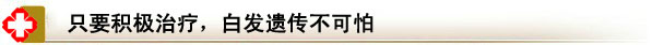 提到遗传,一般人首先想到的就是先天性,是无法治疗的,因此很多人放弃了对遗传性白发的治疗。临床发现,遗传性白发患者尚未生育的,在其白发通过中医治疗获得痊愈后,后生育的子女 其白发的遗传特征不明显;此外,在具有白发遗传特性的对象中,白发出现的早晚与速度也与该人的体质关系密切。上述证据充分说明,虽然说遗传性白发是白发疾病中最难根除的一种,但是患者只要有 耐心,遗传性白发并非无药可医。点击咨询,听名老中医讲解如何治疗遗传性白发点击咨询专家按钮