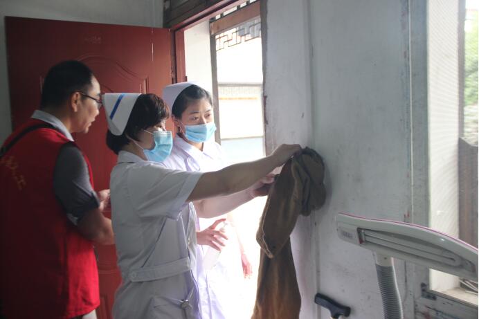 南昌中山皮肤病医院医护人员正在为老人们测量血压和血糖