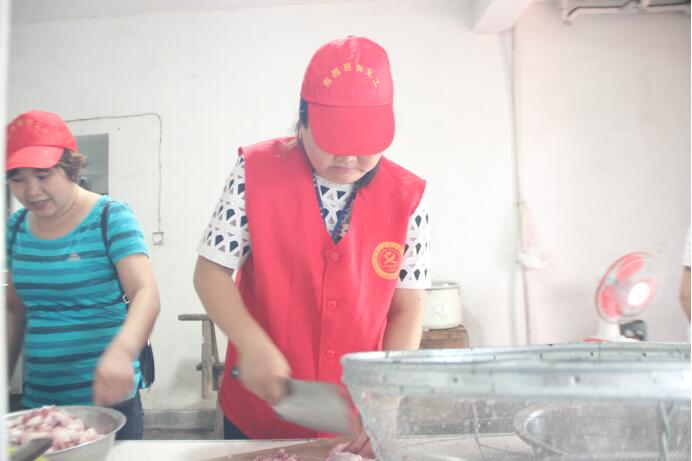 义工和敬老院工作人员共同为老人们准备丰盛的午餐,提前给老人们过一个幸福的中秋团圆节