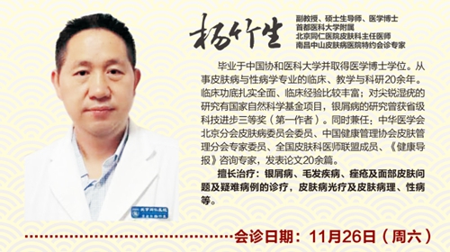 11月26日 首都医科大学附属北京同仁医院皮肤科主任医师、副教授、医学博士、硕士生导师杨竹生莅临我院会诊